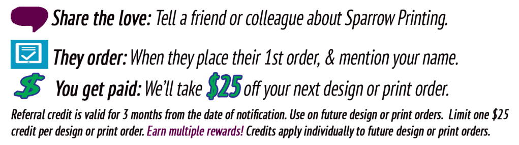 Welcome to Sparrow Printing Referral Incentive Program