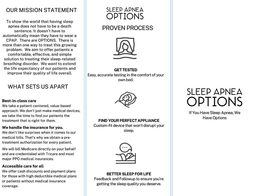 *** Sleep Apnea Options requested Sparrow Printing to setup their already created brochure to be lined up correctly and setup for high resolution printing.