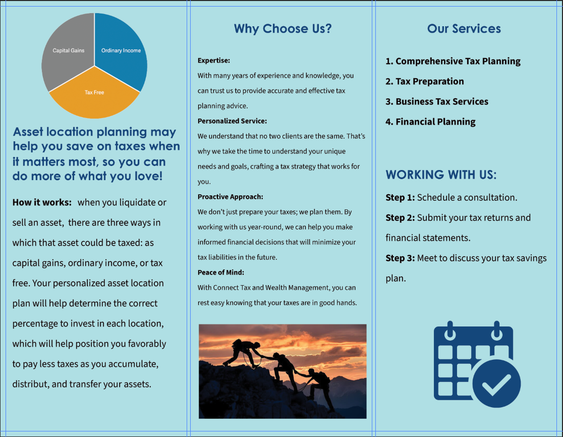 *** Connect Tax requested Sparrow Printing to graphic design their a Tri-fold Brochures and Flyers