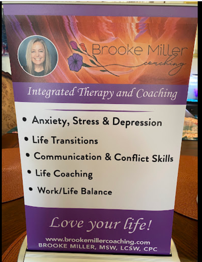 *** Sparrow Printing designed and set up printing for Brooke Coaching Retractable Table Display. It was delivered via next day shipping to make it on time for an event. This picture shows the finished product