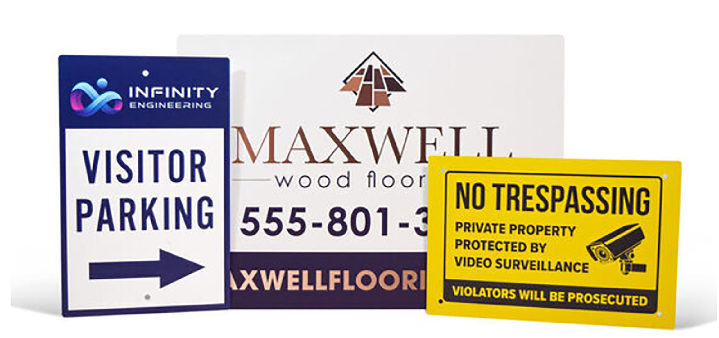 Large signs can be designed in all kinds of sizes. These are ideal to display in front of your business building. These are designed for wind, rain, snow and sun. They come in a variety of materials like acrylic, aluminum, PVC, Cardboard and foam.
